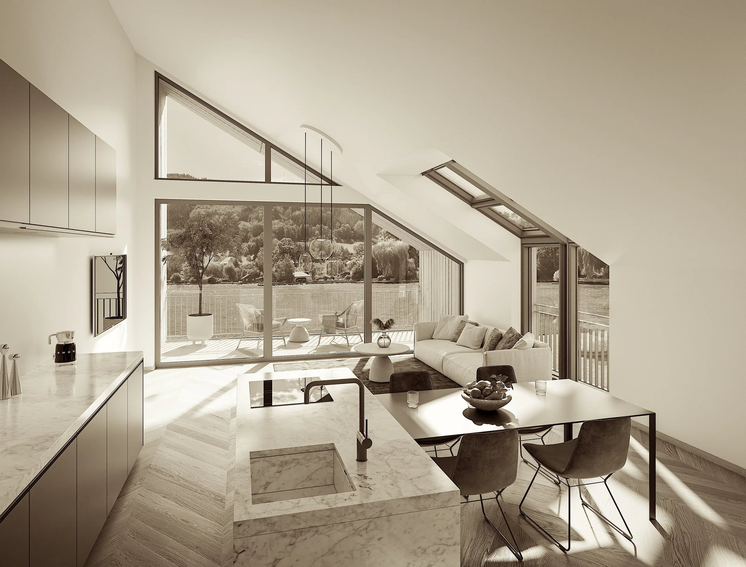 Erleben Sie Wohnen in seiner schönsten Form - direkt am Ufer des idyllischen Brennsees in Kärnten. Die Wohnung befindet sich in Ruhelage, eingebettet in die malerische Natur- und Seenlandschaft der Region. Genießen Sie das ganze Jahr über die Vorzüge eines Lebens am Wasser - LAKE HOME - mit atemberaubenden Ausblicken und direktem Zugang zum See.